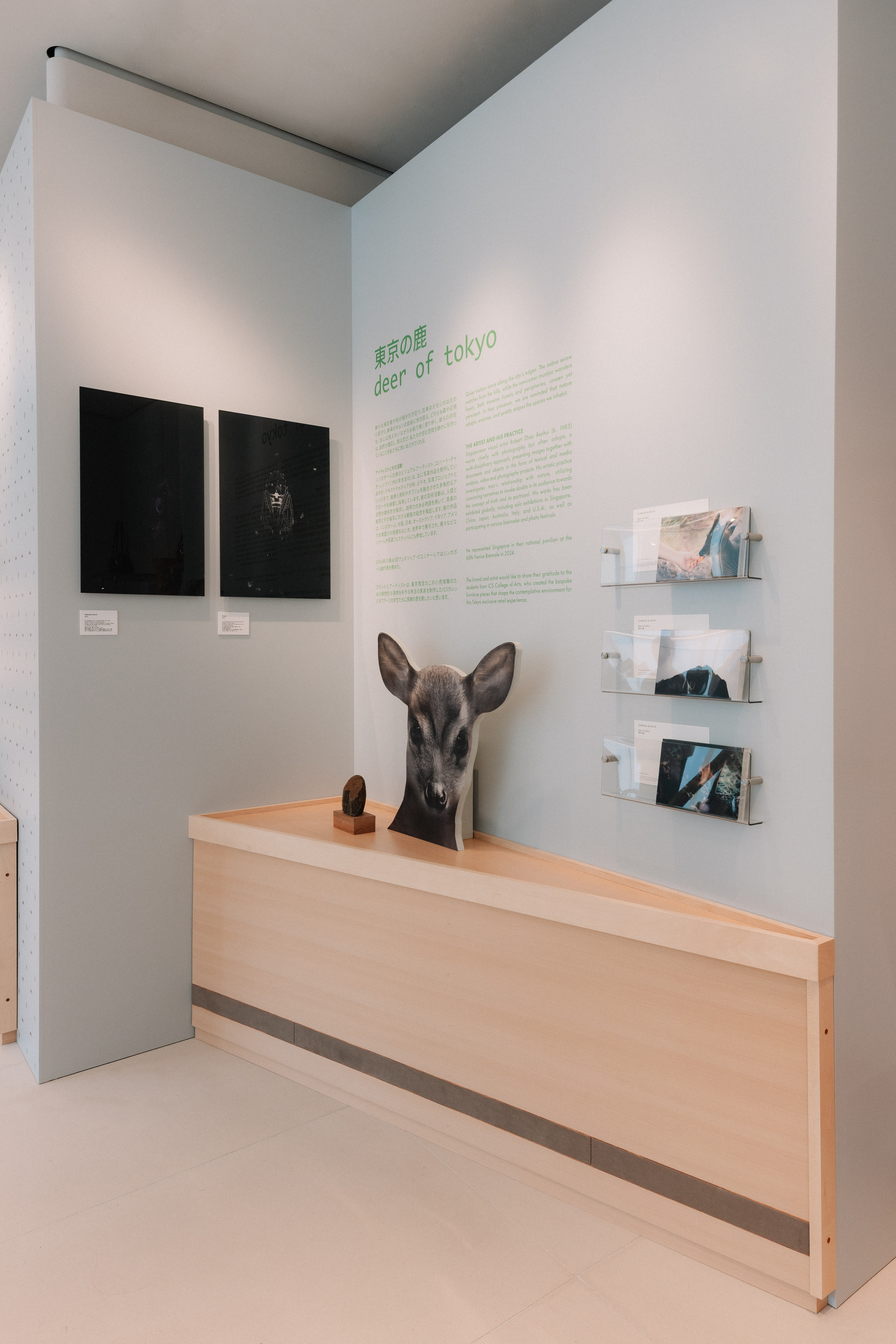 “deer of tokyo” reflects Zhao’s long-term research into two deer-like species that inhabit Japan: the Japanese Serow, a native mountain-dwelling goat-antelope found in highland forests surrounding Tokyo, and the Muntjac, a small, introduced deer species with wild populations on Izu Ōshima, part of the Tokyo Metropolis. The project meditates on themes of species trace, disappearance, and constructed habitats, inviting visitors to reflect on how animals move through — and sometimes vanish from — the margins of human-altered landscapes.